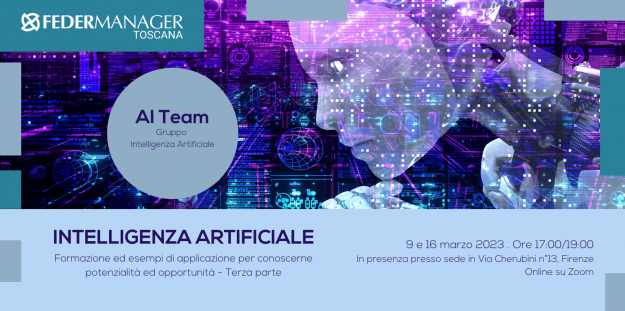 INTELLIGENZA ARTIFICIALE Formazione ed esempi di applicazione per conoscerne potenzialità ed opportunità – terza parte 9 e 16 Marzo 2023 Il gruppo di lavoro Intelligenza Artificiale – AI Team, propone a tutti gli associati di proseguire il percorso di formazione e informazione con il terzo blocco di incontri dove, grazie alla disponibilità di alcuni…