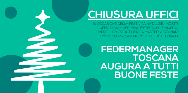 Si comunica che per le Ferie Natalizie i nostri uffici resteranno chiusi dal 27 dicembre al 2 gennaio compreso. Riapriranno al pubblico mercoledì 3 gennaio.