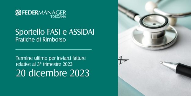 Gentili Soci, si comunica che sarà possibile l’invio delle fatture riguardanti il 3° trimestre 2023 per il nostro Sportello Fasi/Assidai (pratiche di rimborso) entro e non oltre mercoledì 20 dicembre 2023. Si raccomanda quindi, per garantire una corretta elaborazione, di inviare le pratiche prima della data indicata.